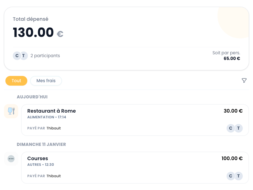 Suivez toutes vos dépenses et calculer une répartition équitable entre les participants.