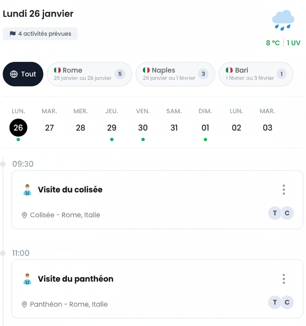 Une interface si fluide que l'organisation devient aussi plaisante que le voyage lui-même.