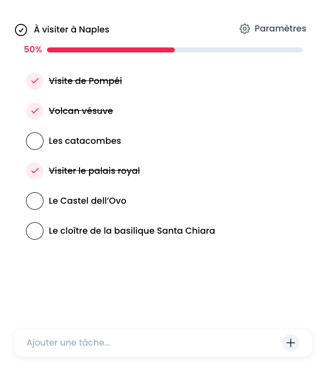 Créez des todo lists privées pour vos préparatifs personnels ou publiques pour que tout le groupe participe à l'organisation.